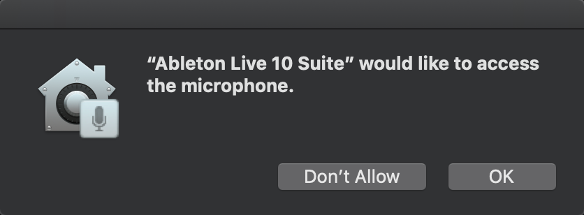 If such a dialog doesn't appear once you select your audio input in your DAW, you'll have to set this manually from within the security preferences by following the steps bellow.