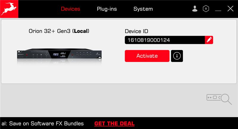 Ten en cuenta que el procedimiento de activación obligatorio del dispositivo requiere una conexión a internet activa en tu ordenador. No es posible activar un dispositivo Antelope Audio sin conexión. Tu Orion 32+ Gen 3 debe activarse en línea para funcionar. Este capítulo contiene las instrucciones necesarias: