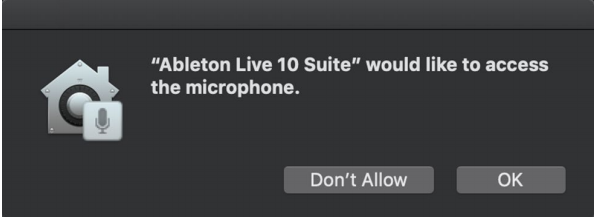 1. DAWを起動し、Pure 2を入力デバイスとして選択します。以下のダイアログボックスが表示されます。(例: Ableton Live 10 Suiteを使用する場合)