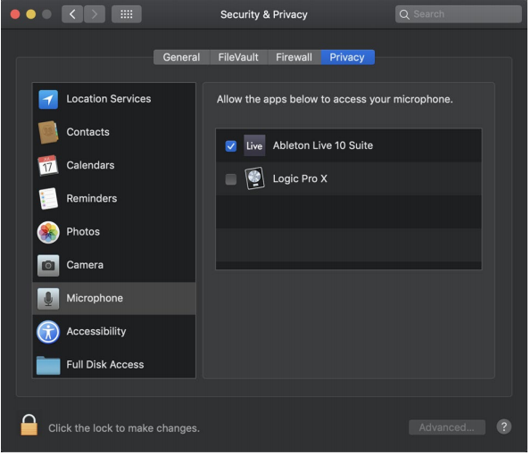 ただし、上記のイベントが何らかの理由で発生しなかった場合、または複数のDAWを使用している場合は、各DAWごとに手動で設定を調整する必要があります。「セキュリティとプライバシー」設定を次の手順で確認してください: